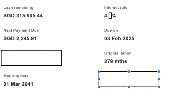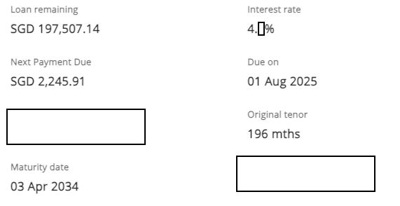 Assuming our interest rate remains constant till the end of the loan period at 4.x%, we have an estimated 23.5 years of loan tenure remaining. If we were to stick to this timeline, the estimated mortgage interest that we have to pay over the next 23.5 years is $245k.