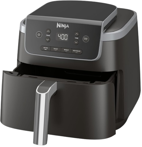 The Ninja AF141 is the most straightforward air fryer on this list — and that’s a genuine strength. The built-in smart processor automatically adjusts fan speeds and temperature for optimal performance across every function, delivering consistent results whether you’re air frying, roasting, baking, reheating, or dehydrating. You don’t need to think about airflow settings — the machine does it for you.