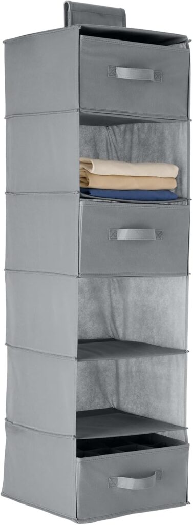 Zone 1: Amazon Basics 6-Tier Hanging Closet Organizer with Removable Drawers